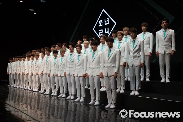(서울=포커스뉴스) 16일 오후 서울 여의도구 63빌딩 그랜드볼룸에서 열린 보이그룹 오디션 프로그램 '소년24 프로젝트' 제작발표회에서 49명의 출연자들이 포토타임을 갖고 있다.