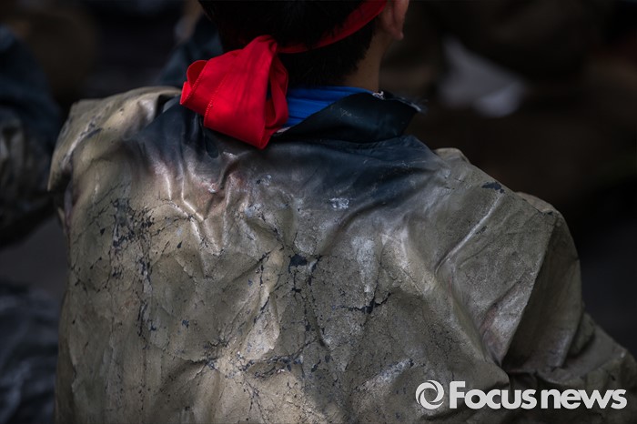 (서울=포커스뉴스) 이틀 전 총파업을 결의한 대우조선해양 노조가 16일 오후 서울 여의도 산업은행 앞에서 사측의 일방적 구조조정에 반대하며 상경투쟁을 하고 있다. 작업복을 입은 한 노동자가 상경투쟁 집회에 참석해 쓸쓸한 뒷모습을 보이고 있다.