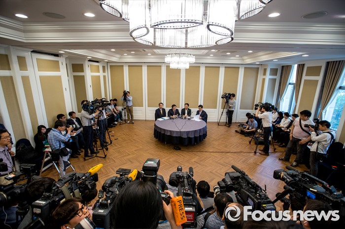 | △ 각당 논의 현안 발표하는 3당 정책위의장 |