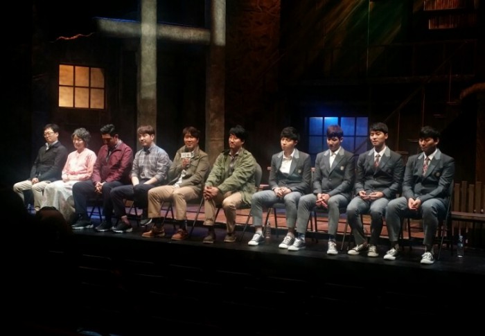 영화 속에서 볼 수 없었던 탄탄하고 풍성한 음악이 더해진 연극 '아들'은 오는 7월24일까지 서울 대학로 아트원씨어터 1관에서 공연된다.16일 오후 서울 대학로 아트원씨어터 1관에서 연극 '아들' 프레스콜에서 정태영(왼쪽) 연출과 출연배우들이 질의응답을 하고 있다. 조승예 기자 sysy@focus.co.kr