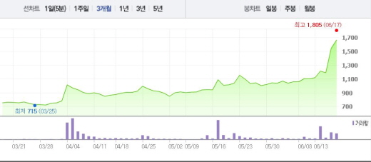 에쎈테크는 17일 오전 9시23분 현재 전일 대비 9.39%(145원) 상승한 1690원에 거래되고 있다. 갑을메탈은 16일에도 29.83%의 상승폭을 기록했다.
