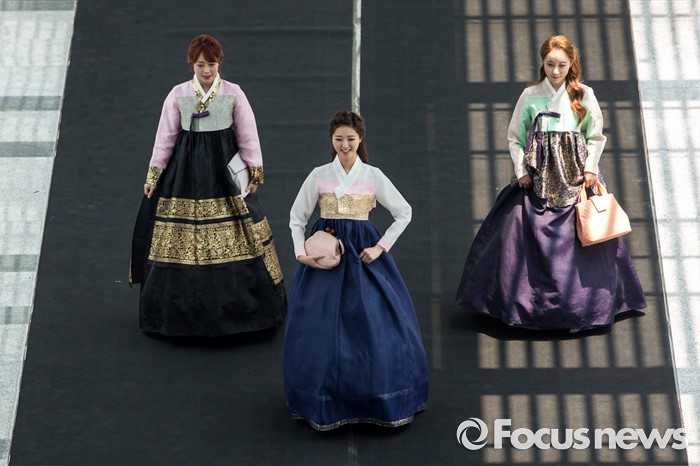 (서울=포커스뉴스) 17일 오후 서울 여의도 국회의원회관에서 열린 '2016 대한민국 국회 초청패션쇼-품'에서 모델들이 한복을 입고 멋진 워킹을 선보이고 있다.