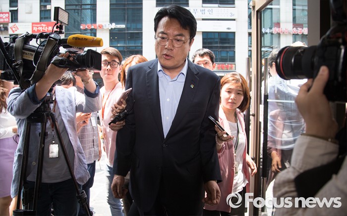 | △ 새누리 복당 사태... 취재진 질문 받는 정진석 원내대표 |