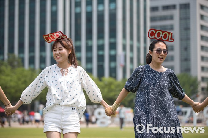 (서울=포커스뉴스) 17일 오전 서울 중구 서울광장에서'시원차림 캠페인'이 열리고 있다. 지난 2005년부터 시작된 이 캠페인은 넥타이를 매지 않은 간편하고 시원한 옷차림으로 더위를 이기고 에너지도 절약하자는 캠페인이다.