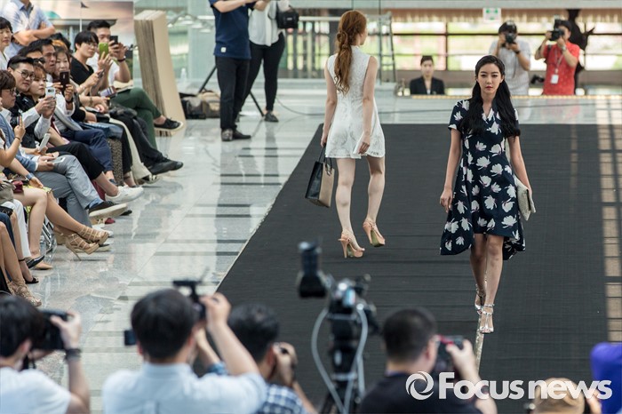 (서울=포커스뉴스) 17일 오후 서울 여의도 국회의원회관에서 열린 '2016 대한민국 국회 초청패션쇼-품'에서 모델들이 개량한복을 입고 멋진 워킹을 선보이고 있다.
