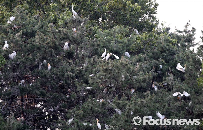 (청주=포커스뉴스) 17일 오후 충북 청주시 서원대학교 야산에 백로 수 백마리가 둥지를 틀고 있다.