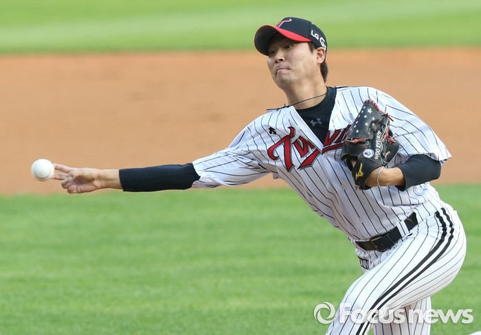 (서울=포커스뉴스) 17일 서울 잠실구장에서 열린 2016 프로야구 KIA-LG 경기에서 1회초 LG 선발투수 우규민이 투구하고 있다.