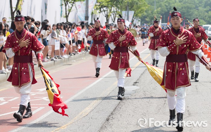 (서울=포커스뉴스) 18일 오후 서울 마포구 평화의 공원에서 열린 '호국보훈 땡큐퍼레이드'에 참가한 군인들이 행진하고 있다.
