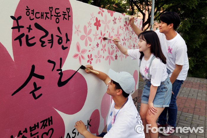 (서울=포커스뉴스) 현대자동차는 18일 서울시설공단, 한국 대학생 홍보대사 연합(ASA-K)과 함께 마포유수지 공영주차장 환경 개선을 위한 디자인 페인팅을 진행했다.