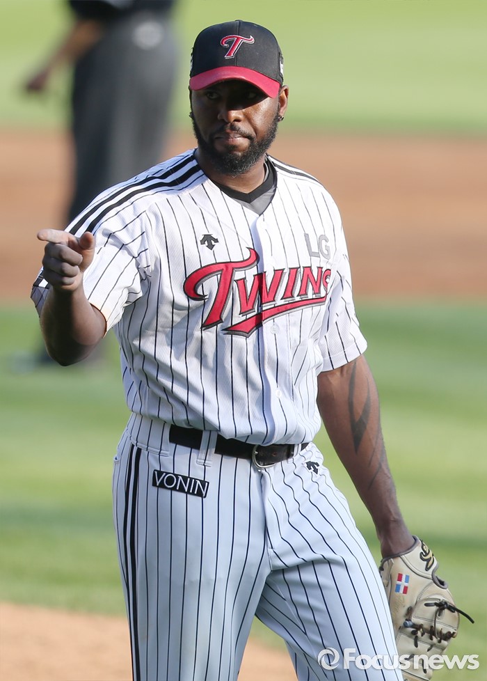 (서울=포커스뉴스) 19일 서울 잠실구장에서 열린 2016 프로야구 KIA-LG 경기에서 LG 투수 소사가 3회 수비를 마치고 나오며 포수 정상호를 향해 격려의 손짓을 하고 있다.