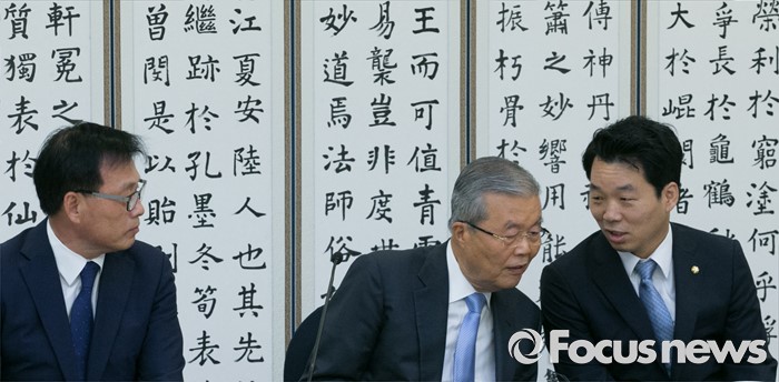 (서울=포커스뉴스) 20일 오전 서울 여의도 국회 귀빈식당에서 열린 더불어민주당 국민연금 공공투자 추진 특위 1차 회의에 참석한 김종인(가운데) 비대위 대표와 박광온(왼쪽) 위원장, 김병관 의원이 대화하고 있다.