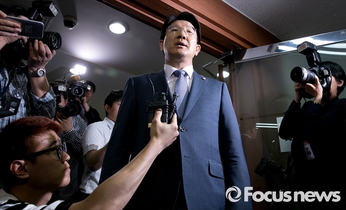 (서울=포커스뉴스) 김희옥 새누리당 혁신비대위원장으로부터 사퇴 권고를 받은 권성동 사무총장이 20일 오전 서울 여의도 당사를 방문해 김 위원장과 면담에 앞서 취재진 질문에 답하고 있다. 권 사무총장은 김 위원장이 자신의 사무총장직 사퇴를 당무 복귀 조건으로 내세운 것에 대해 자진사퇴할 뜻이 전혀 없다고 전한 바 있다.