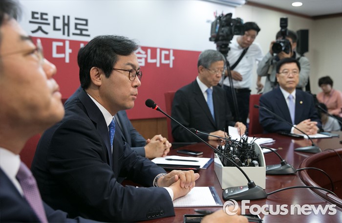 (서울=포커스뉴스) 김영우 새누리당 혁신비대위원이 20일 오전 서울 여의도 당사에서 열린 혁신비상대책위원회의에 참석해 권성동 사무총장의 경질과 관련 발언하고 있다.