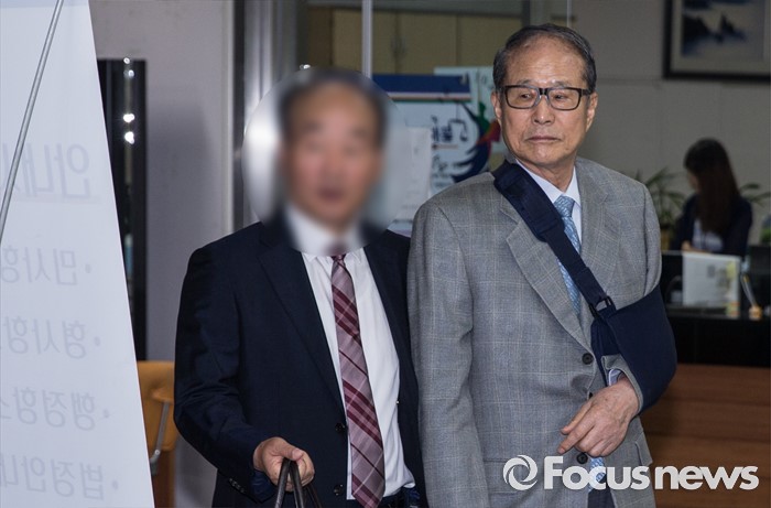 (서울=포커스뉴스) 20일 오전 서울 서초구 서울중앙지방법원에서 포스코 비리에 연루된 혐의를 받고 있는 이상득 전 의원이 2차공판에 출석하고 있다.