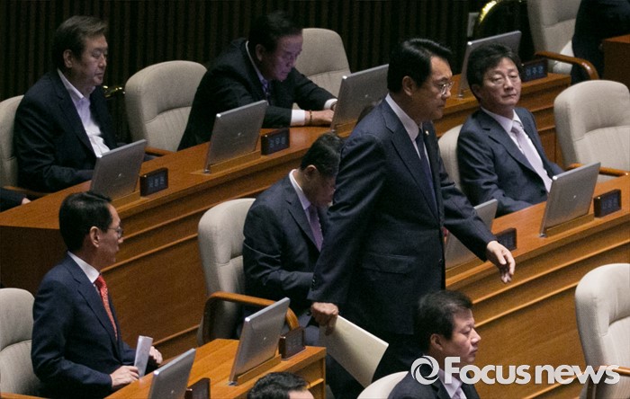 (서울=포커스뉴스) 20일 오전 서울 여의도 국회에서 열린 343회 국회(임시회) 3차 본회의에 참석한 정진석 새누리당 원내대표가 교섭단체 대표연설을 위해 이동하고 있다.