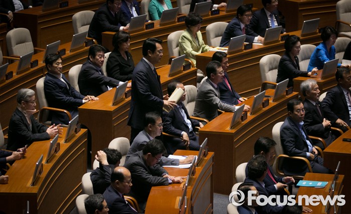 (서울=포커스뉴스) 20일 오전 서울 여의도 국회에서 열린 343회 국회(임시회) 3차 본회의에 참석한 정진석 새누리당 원내대표가 교섭단체 대표연설을 위해 이동하고 있다.
