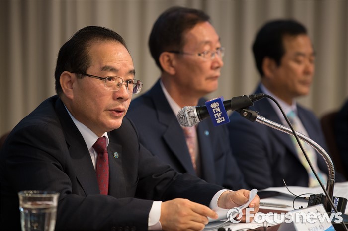 (서울=포커스뉴스) 20일 오전 서울 서초구 한국교원단체총연합회에서 열린 제36대 한국교총 회장선거에 선출된 하윤수 부산교대 총장이 인사말을 하고 있다.