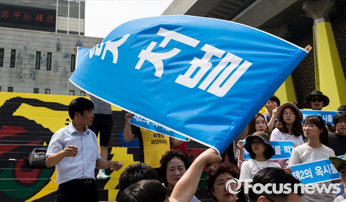(서울=포커스뉴스) 20일 오후 서울 종로구 세종문화회관 앞 계단에서 환경운동연합과 시민사회단체들이 가습기 살균제 참사 전국네트워크 출범 기자회견을 하고 있다.