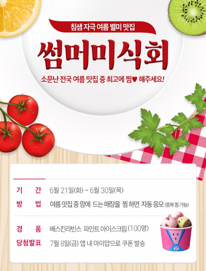오는 30일까지 가고 싶은 여름 맛집 '찜'하면 자동 응모
