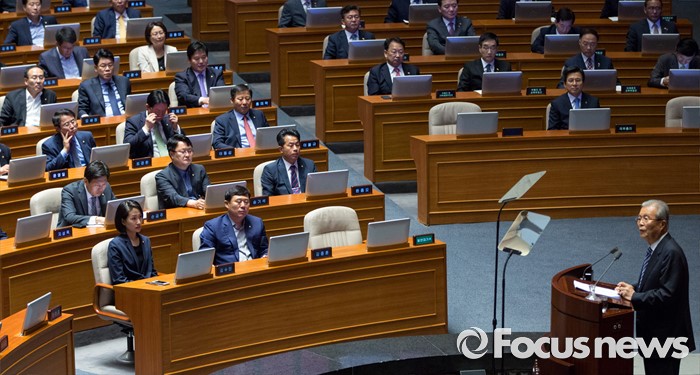 (서울=포커스뉴스) 김종인 더불어민주당 비상대책위 대표가 21일 오전 서울 여의도 국회에서 열린 본회의에 참석해 교섭단체대표 연설 하고 있다.