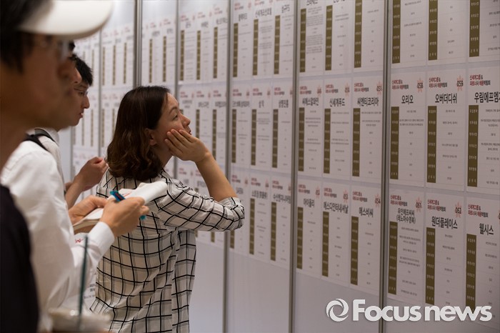 (서울=포커스뉴스) 21일 오후 서울 강남구 코엑스 D2홀에서 열린 신세계그룹&파트너사 채용박람회에서 구직자들이 채용공고게시판을 보고 있다.