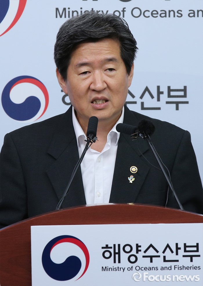 (세종=포커스뉴스) 윤학배 해양수산부 차관이 21일 오전 세종시 정부세종청사 해수부 기자실에서 뱀장어 완전양식 기술 세계 2번째 개발성공 브리핑을 하고 있다.