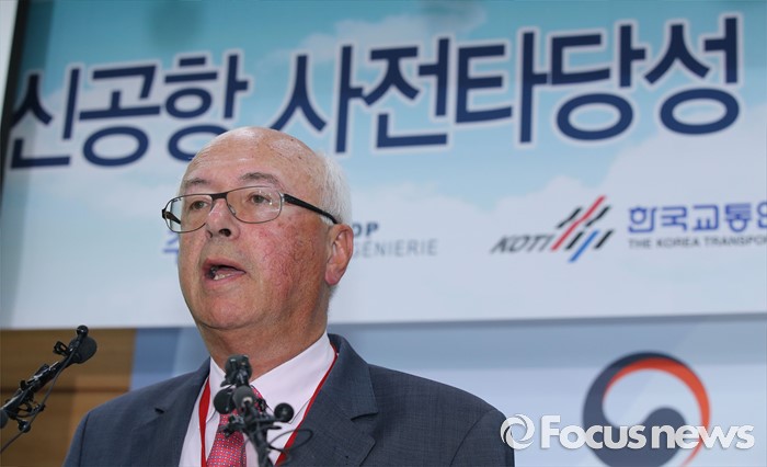 (세종=포커스뉴스) 장 마리 슈발리에 프랑스 파리공항공단자회사 ADPi 수석엔지니어가 21일 오후 세종시 정부세종청사 국토교통부 브리핑실에서 열린 동남권 신공항 타당성 검토 연구 최종 보고회에서 입지선정 결과를 발표하고 있다.