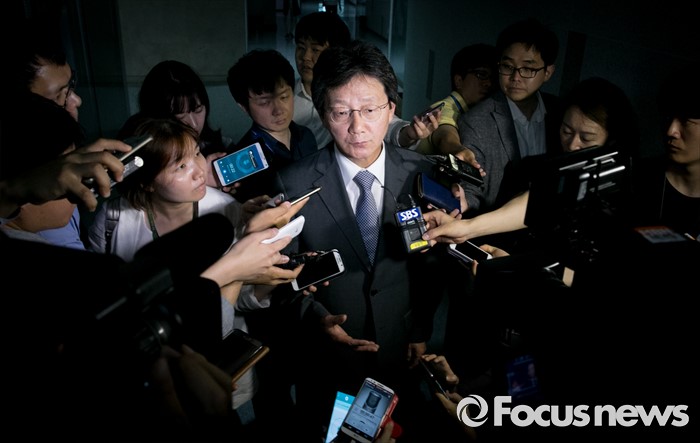 (서울=포커스뉴스) 유승민 새누리당 의원이 21일 오후 서울 여의도 국회 의원회관 윤재옥 의원실에서 열린 대구 지역 의원모임에 참석해 영남권 신공항 결과 발표를 지켜본 뒤 취재진 질문에 답하고 있다.