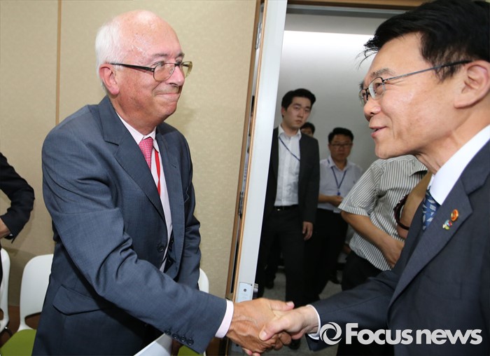 (세종=포커스뉴스) 강호인(오른쪽) 국토교통부 장관이 21일 오후 세종시 정부세종청사 국토교통부 브리핑실에서 열린 동남권 신공항 타당성 검토 연구 최종 보고회에서 입지선정 결과에 따른 정부입장을 밝히고 있다.