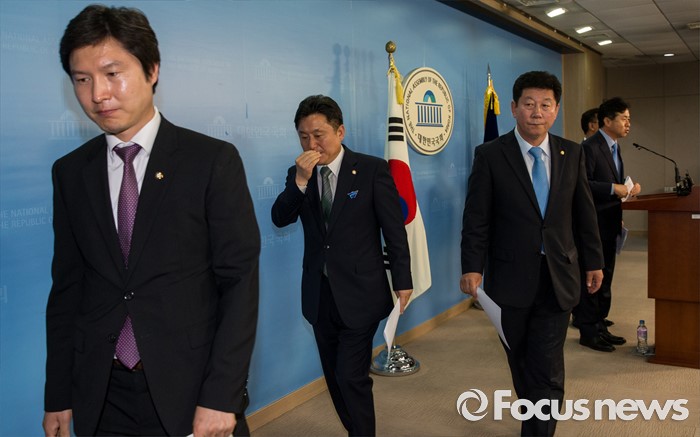 (서울=포커스뉴스) 더불어민주당 부산 지역 의원들이 21일 오후 서울 여의도 국회 정론관에서 영남권 신공항 결과 발표 관련 기자회견을 마친 후 발걸음을 옮기고 있다.
