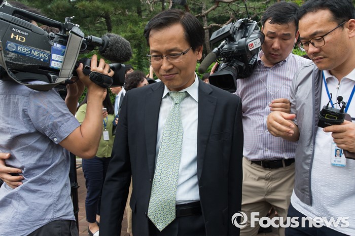 (서울=포커스뉴스) 채희준 민주 사회를 위한 변호사모임 통일위원회 위원장이 21일 오후 서울 서초구 서울중앙지방법원에서 국가정보원 상대 북한 식당종업원 인신구제청구 1차 심문기일을 마친 뒤 법원을 나서고 있다.