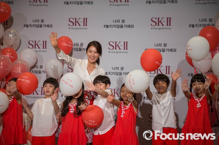 (서울=포커스뉴스) 배우 김희애가 21일 오후 서울 삼성동 그랜드 인터컨티넨탈 호텔에서 열린 'SK-II 나의 꿈 #놓치지않을거예요' 캠페인 런칭 행사에 참석, 아이들과 함께 포토월 앞에서 포즈를 취하고 있다.