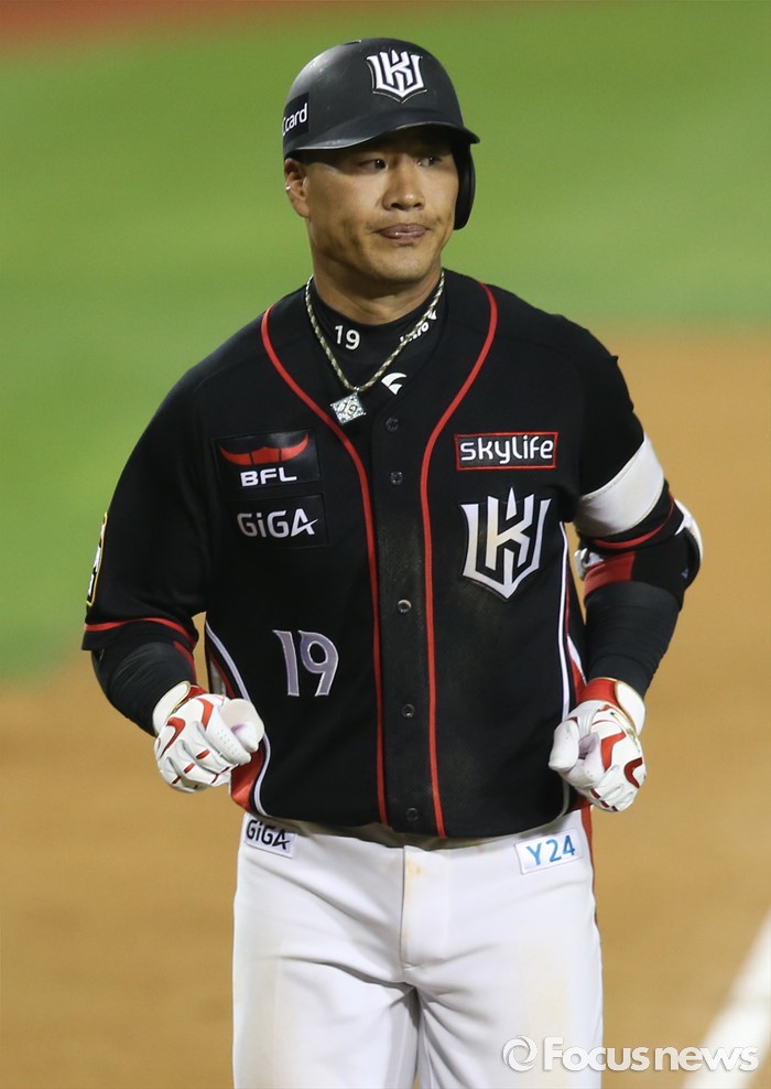 (서울=포커스뉴스) 12일 서울 잠실구장에서 열린 2016 프로야구 kt-두산 경기, 8회초 2사후 kt 김상현이 좌중월 솔로 홈런을 치고 홈인하고 있다.