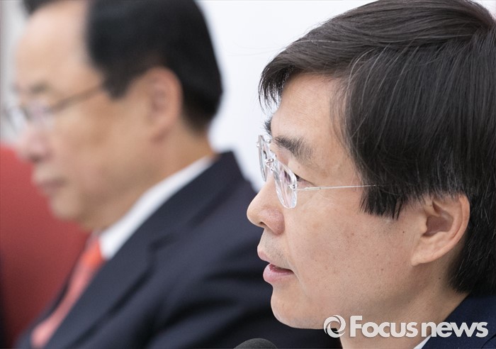 (서울=포커스뉴스) 22일 오전 서울 여의도 국회에서 열린 새누리당 신공항 관련 5개 시도 중진의원 간담회에 참석한 조경태 의원이 발언하고 있다.