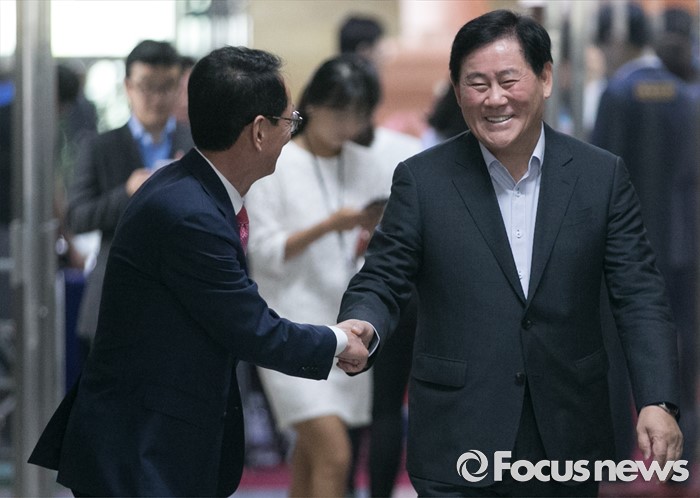 (서울=포커스뉴스) 22일 오전 서울 여의도 국회에서 열린 새누리당 신공항 관련 5개 시도 중진의원 간담회에 김도읍(왼쪽) 원내수석부대표와 최경환 의원이 참석하고 있다.