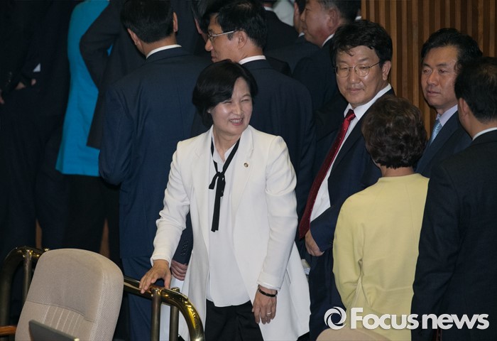한편 현재 더민주에선 8·27 전당대회를 앞두고 추 의원을 비롯해 김부겸·이종걸·김진표·박영선·송영길·신경민 의원 등이 당 대표 후보군을 이루고 있다. 이중 당 내 비주류에 속하는 김부겸·이종걸·박영선 의원 간 후보 단일화 논의가 이뤄지고 있다.지난 13일 오후 서울 여의도 국회에서 상임위원장 선출을 위해 열린 343회 국회(임시회) 2차 본회의에 참석한 추미애 더불어민주당 의원이 동료 의원들과 대화하고 있다. 2016.06.13 박동욱 기자