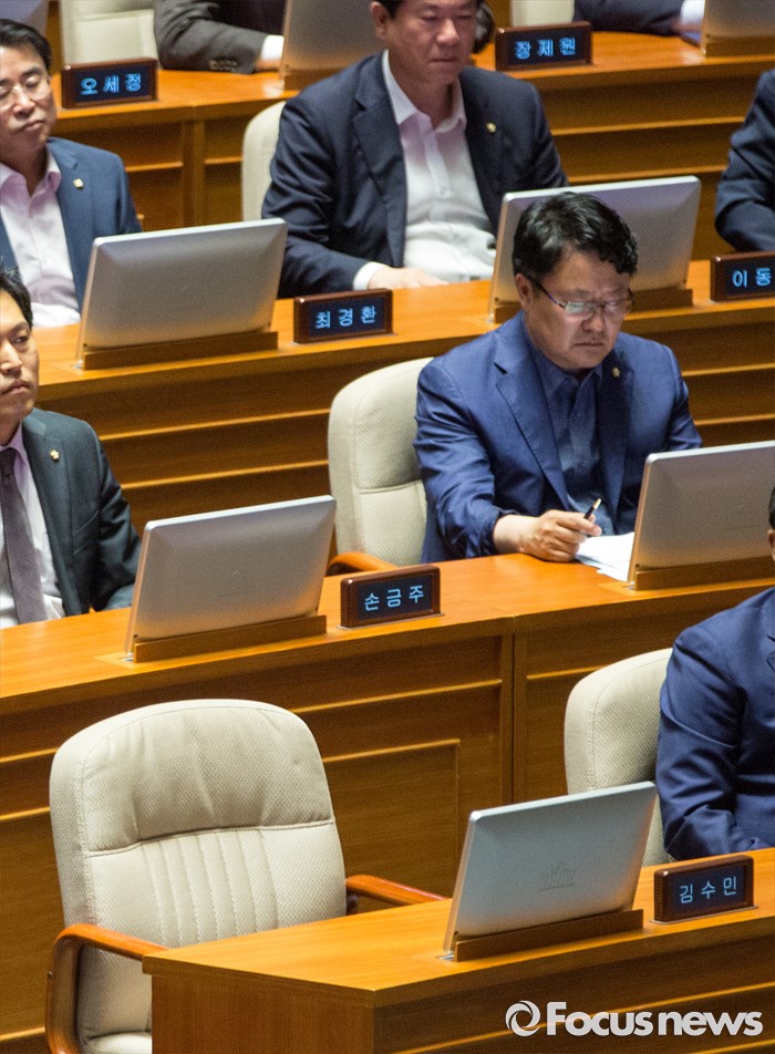 (서울=포커스뉴스) 국민의당 교섭단체 대표 연설이 진행되고 있는 22일 오전 서울 여의도 국회 본회의장에 김수민 국민의당 의원의 빈자리가 보이고 있다. 김 의원은 23일 총선 홍보비 리베이트 수수의혹으로 검찰 조사 예정되있다.