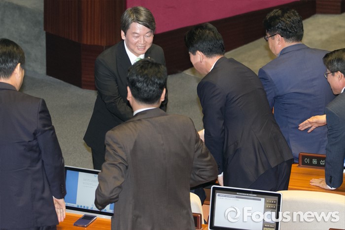 (서울=포커스뉴스) 22일 오전 서울 여의도 국회에서 열린 343회 국회(임시회) 5차 본회의에 참석한 안철수 국민의당 상임공동대표가 교섭단체 대표연설을 마친 뒤 동료 의원들과 인사하고 있다.