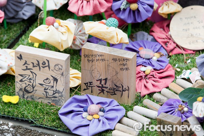 (서울=포커스뉴스) 22일 오후 서울 종로구 옛 일본대사관 앞에서 제1236차 일본군 위안부 문제해결을 위한 정기수요집회가 열리고 있다.