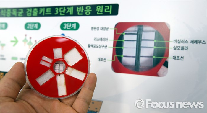 식중독균 검출키트는 농진청과 KAIST, 전북대가 공동으로 개발, 식중독균 5종을 1시간 안에 동시에 검출 할 수 있으며, 다이얼 모양의 종이 기반 감지기에 시료를 넣고 돌리면 중앙의 원 안에 청색 선이 보이면서 식중독균을 확인할 수 있다.