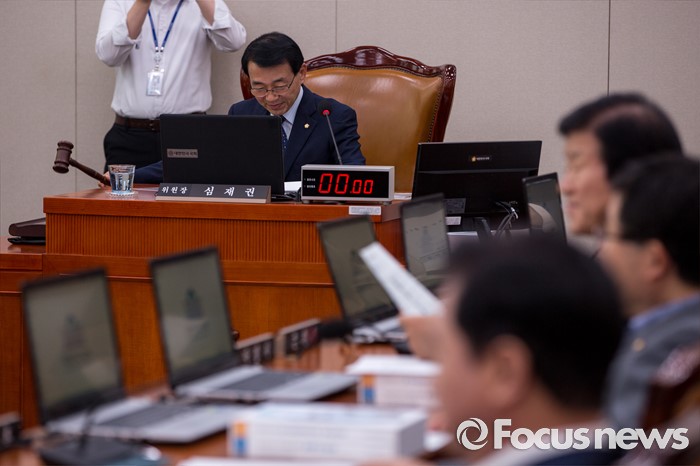 (서울=포커스뉴스) 심재권 국회 외교통일위원회 위원장이 22일 오전 서울 여의도 국회에서 열린 '외교통일위원회 전체회의'에 참석해 의사봉을 두드리고 있다.