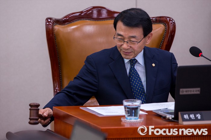 (서울=포커스뉴스) 심재권 국회 외교통일위원회 위원장이 22일 오전 서울 여의도 국회에서 열린 '외교통일위원회 전체회의'에 참석해 의사봉을 두드리고 있다.