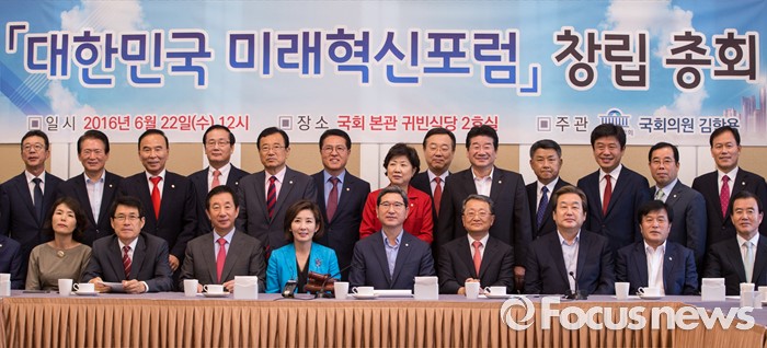 (서울=포커스뉴스) 비박계 새누리당 의원들이 주축이 된 '대한민국 미래혁신포럼' 창립 총회 참가 의원들이 22일 오후 서울 여의도 국회에서 열린 총회에서 기념촬영을 하고 있다.