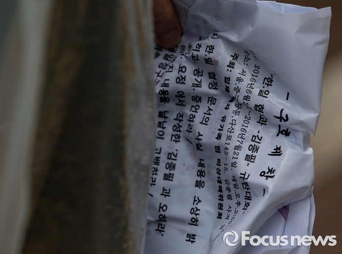 (서울=포커스뉴스) 22일 오후 서울 중구 신당동 김종필 전 총리 자택 앞에서 일제 강제동원희생자유가족협동조합 및 아시아태평양 전쟁희생자 한국유족회 회원들이 '한일협정 당시 일본외상 오히라 와 메모로 합의한 역사의 진실을 밝힐 것'을 촉구하고 있다.