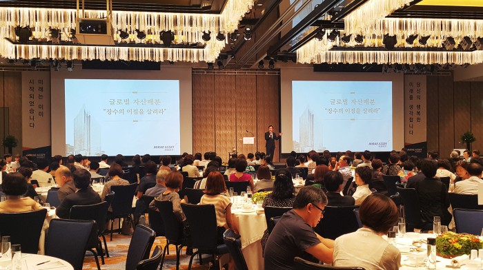 ‘글로벌 자산배분, 장수의 이점을 살려라’라는 주제로 진행된 이날 포럼은 김경록 미래에셋 은퇴연구소장, 위득환 미래에셋생명 고객자산운용팀장의 강의가 이어지며 참석자들에게 저금리, 저성장 시대의 효과적인 자산관리 방법에 대해 설명했다.