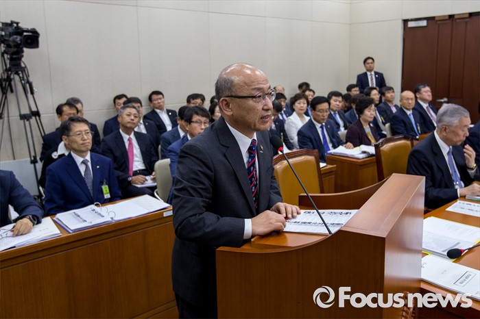 (서울=포커스뉴스) 문형표 국민연금공단 이사장이 22일 오후 서울 여의도 국회에서 열린 '보건복지위원회 전체회의'에 참석해 2015년 메르스 사태 당시 보건복지부 장관을 중간에 사퇴한 이유로 국정감사 출석에 불응한 것과 메르스 사태 미수습에 대해 사과 하고 있다.