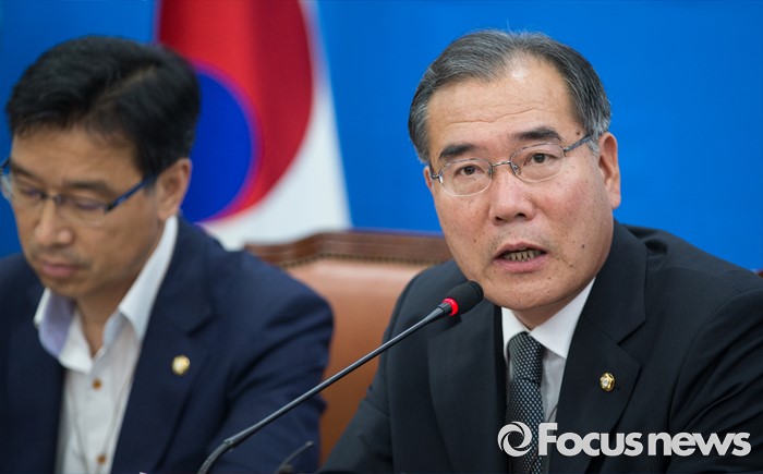 (서울=포커스뉴스) 이개호(오른쪽)더불어민주당의원이 22일 오후 서울 여의도 국회에서 열린 더불어민주당 세월호 TF 회의에 참석해 발언하고 있다.