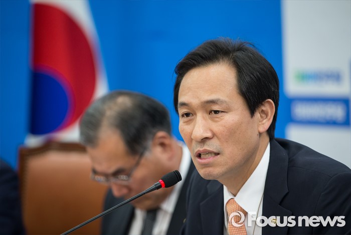 (서울=포커스뉴스) 우상호(오른쪽) 더불어민주당 원내대표가 22일 오후 서울 여의도 국회에서 열린 더불어민주당 세월호 TF 회의에서 발언하고 있다.