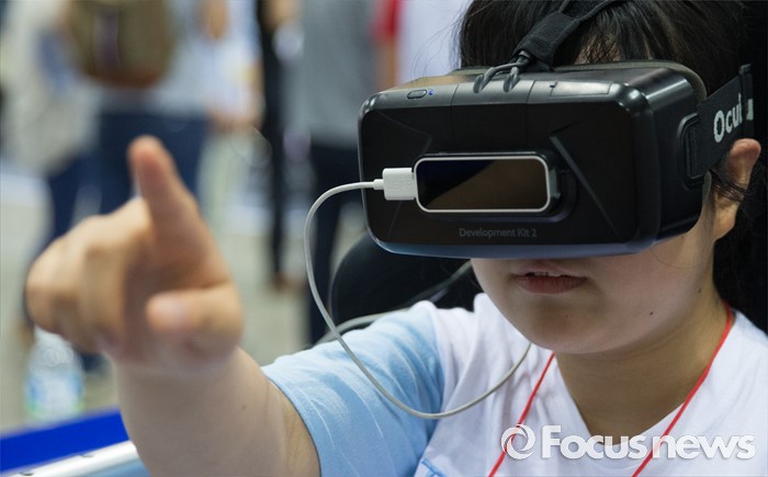 (고양=포커스뉴스) 22일 오후 경기 고양시 킨텍스 7홀에서 열린 2016 로보유니버스 & VR 서밋에 방문한 한 시민이 VR 기기를 체험하고 있다.