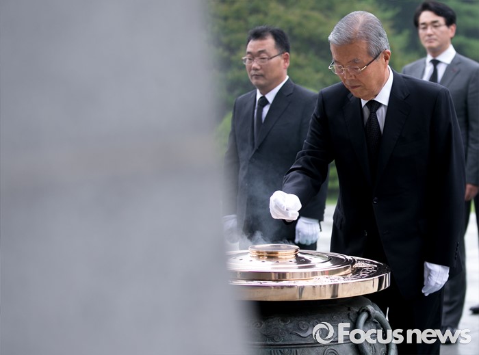 (서울=포커스뉴스) 김종인 더불어민주당 비대위 대표와 의원들이 22일 오후 서울 동작구 국립서울현충원 내 국방부 유해발굴감식단 방문에 앞서 현충탑 참배를 하고 있다.